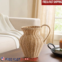 Inform when this item available 9-Inch Faux Wood Rattan Pitcher Vase – Decorative Woven Design for Dried Flowers or Plants – Rustic Home Decor Accent