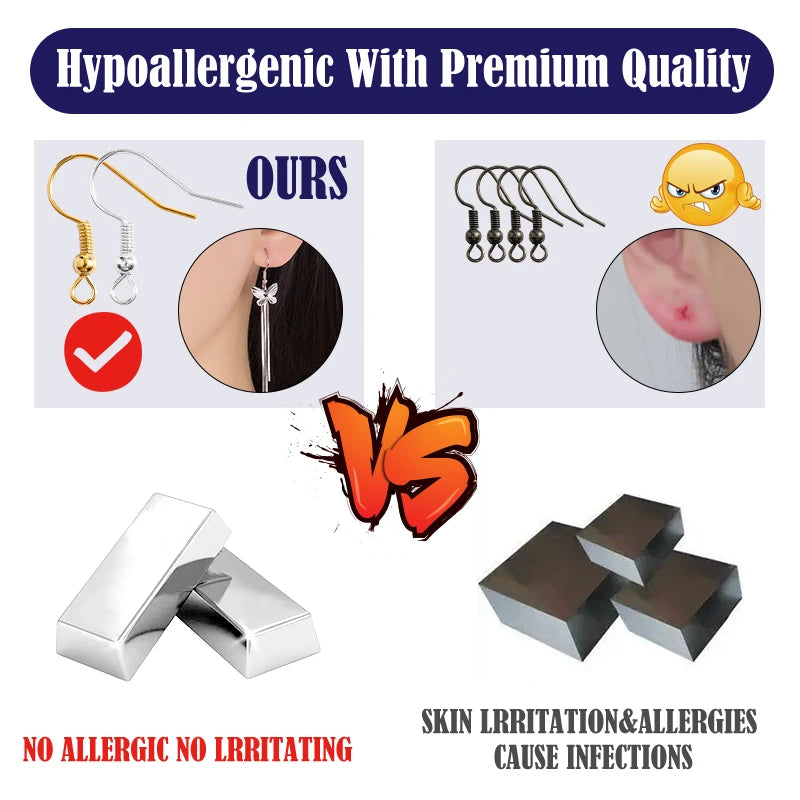 300-Piece Earring Findings Set – Hypoallergenic Hooks, Jump Rings, and Clear Rubber Backs for DIY Jewelry Making