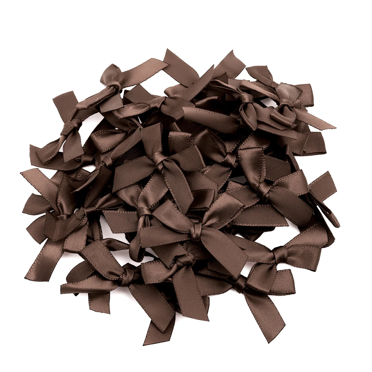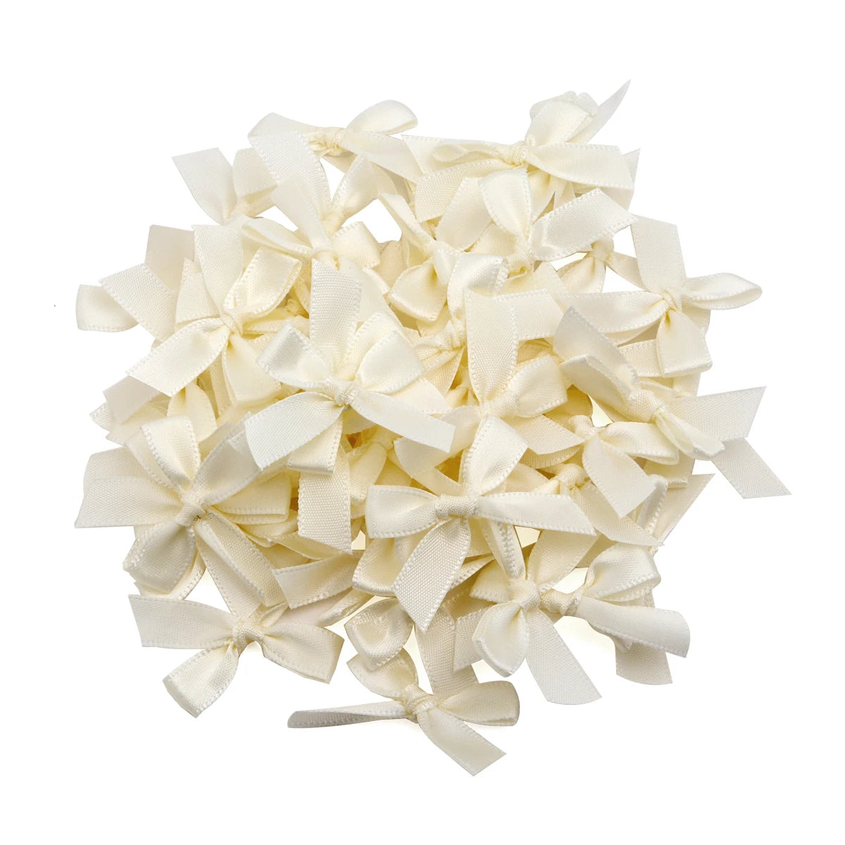 Set of 50 colorful handmade satin ribbon bows.