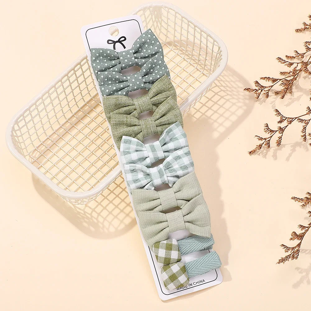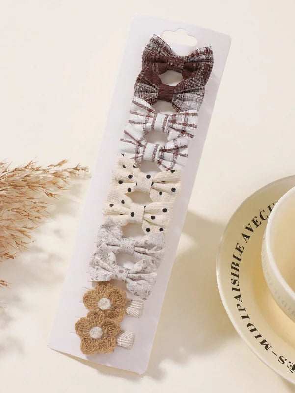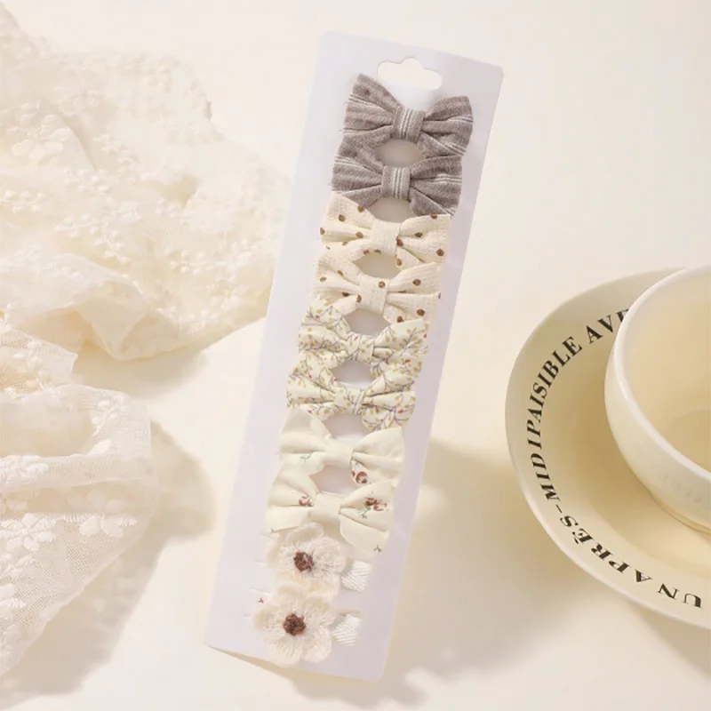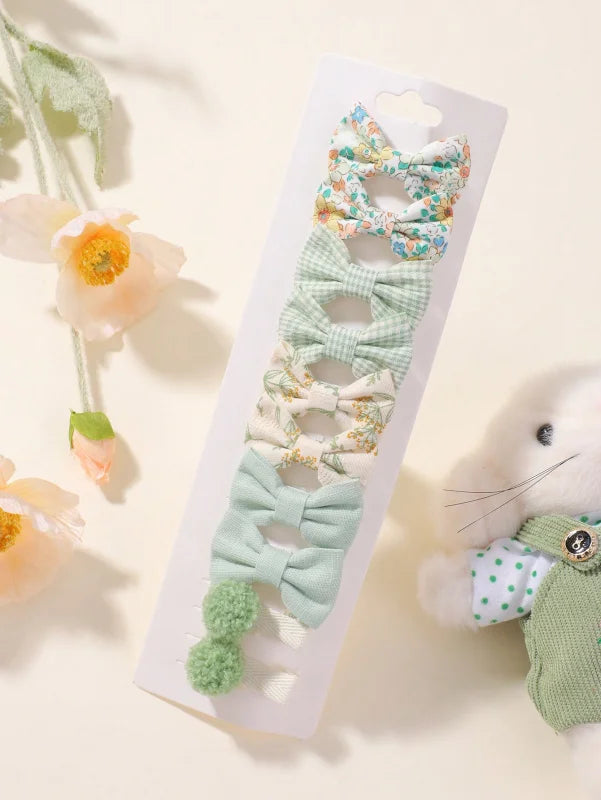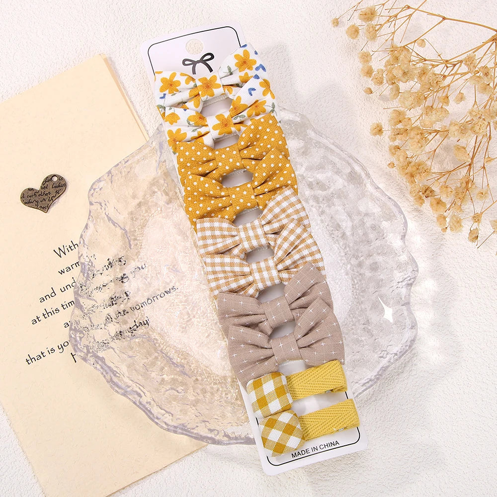 Inform when this item available 10-Piece Rainbow Fabric Bow Hair Clips – Handmade Printed Barrette Set for Girls, Mini Bangs Bows, Spring 2025 Style