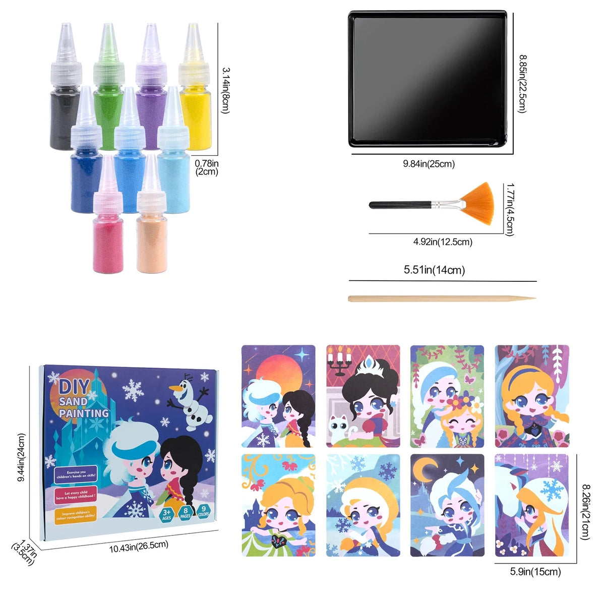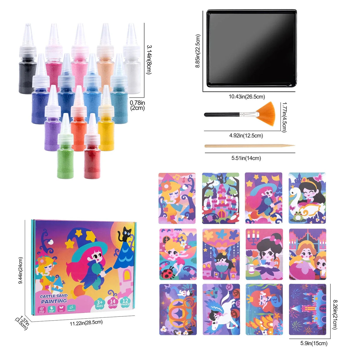 Sand Art Kit for Kids – 12 Princess Sand Painting Cards with 14 Colors – DIY Montessori Crafts, Educational Toys & Creative Gifts for Girls and Boys Ages 4–10