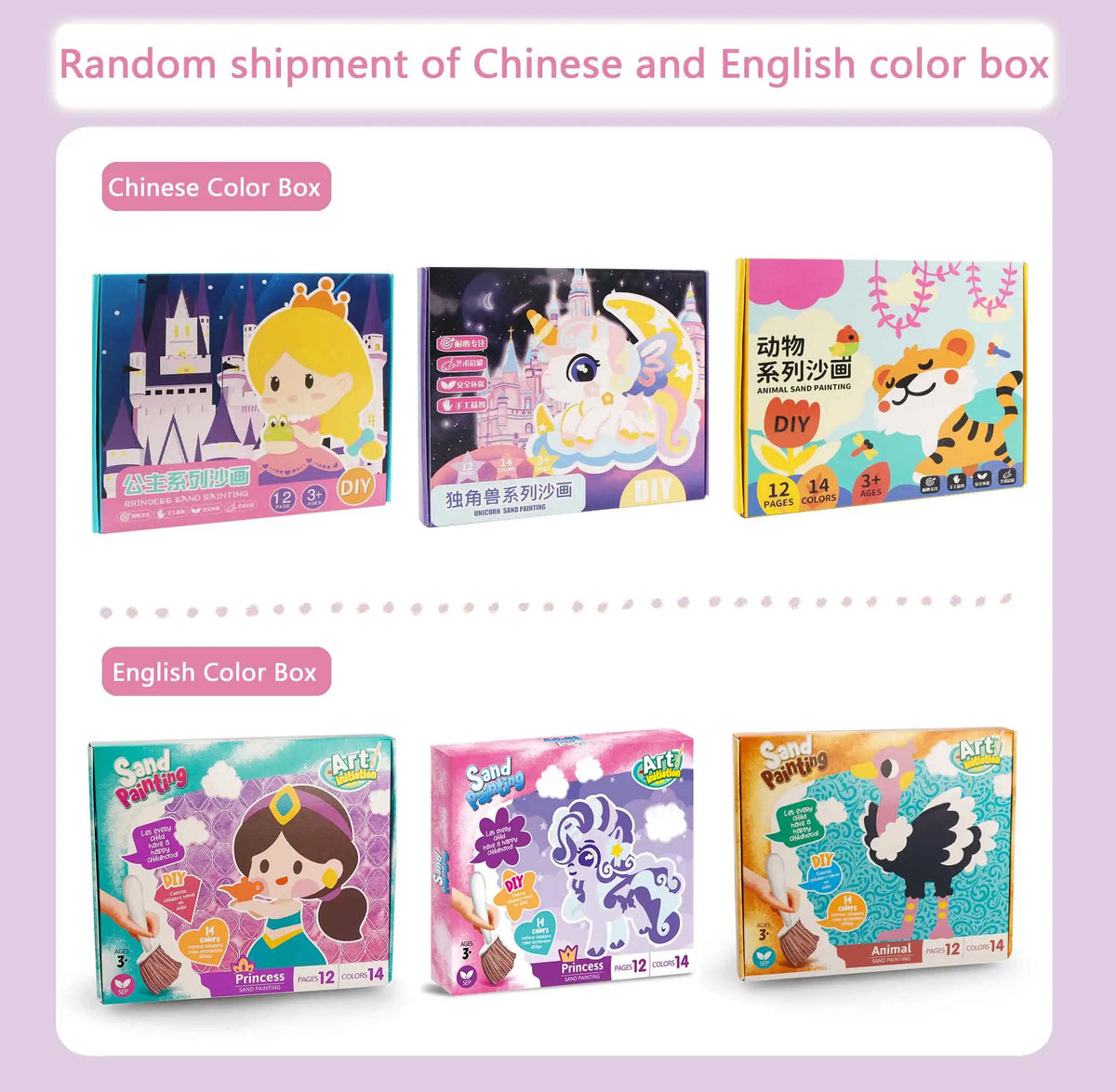 Sand Art Kit for Kids – 12 Princess Sand Painting Cards with 14 Colors – DIY Montessori Crafts, Educational Toys & Creative Gifts for Girls and Boys Ages 4–10 - Animals / CHINA