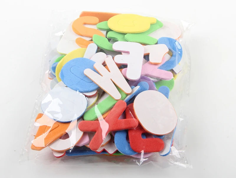 Includes assorted foam stickers in geometric shapes, stars, and letters